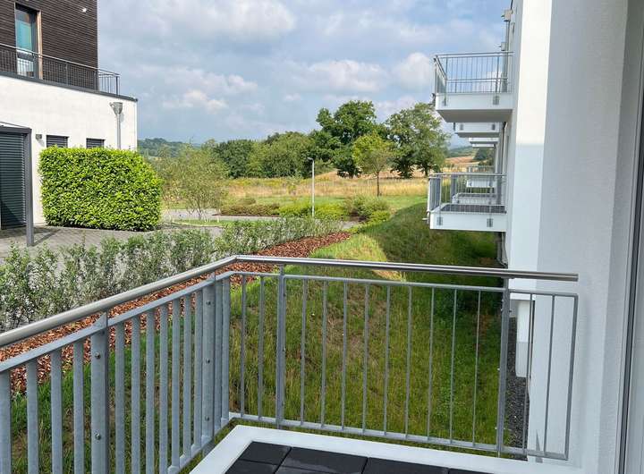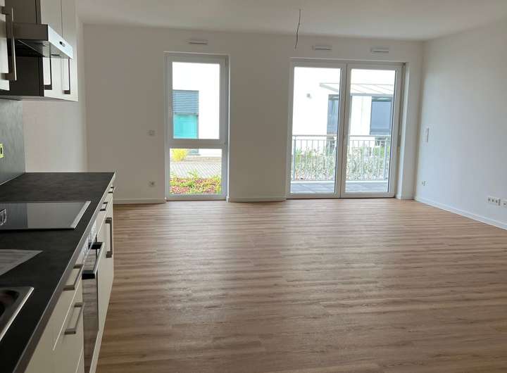 Durch den barrierefreien Hauseingang erwartet Sie ein moderner Grundriss mit perfekter Raumaufteilung. Eine hochwertige Ausstattung mit Vinylbodenbelag in Holzoptik, weiss gestrichenen Wänden und einem modernen Bad, Fussbodenheizung, elektrischen Rollläden und Videogegensprechanlage, erwartet Sie. Die Küche mit moderner Küchenmöbeln, ist im Wohnraum integriert und mit Geschirrspülmaschine, Backofen, Ceranfeld, Kühl- und Gefrierschrank ausgestattet. Vom großzügigen Wohnbereich-/Essbereich haben Sie Zugang zum Balkon.