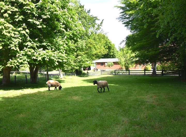 Ein Teil des Grundstücks ist als Gartenland gestaltet und bietet mit seiner großzügigen Terrasse, einem idyllischen Teich und zahlreichen alten Bäumen ein unvergleichliches Naturerlebnis. Zusätzlich gibt es einen gepflegten Obstgarten mit einem gemütlichen Gartenhaus sowie eine separate Schafskoppel mit Stall, die derzeit von zwei Schafen bewohnt wird.