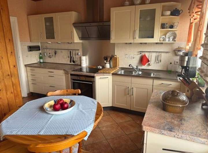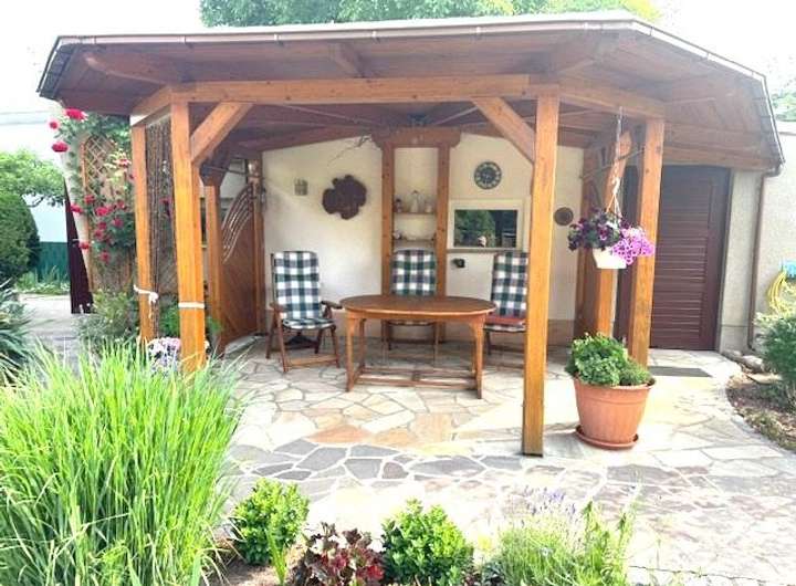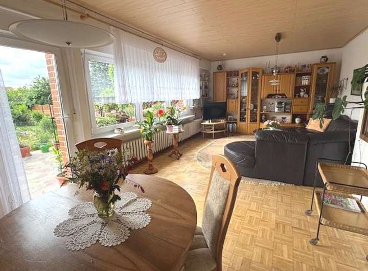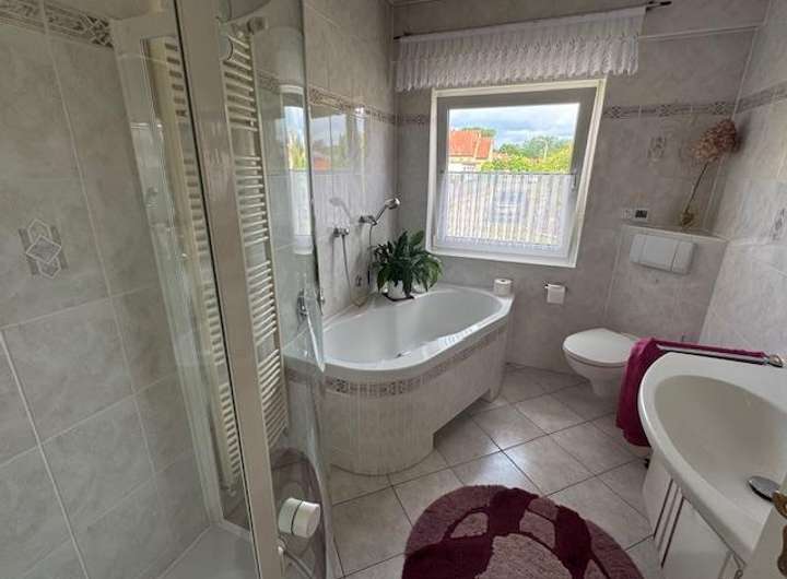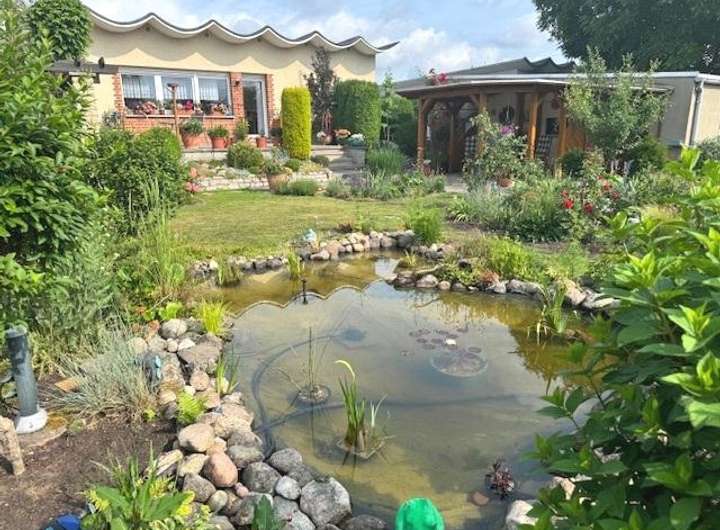 Grundstück und Gebäude sind an die öffentlichen Netze von Wasser, Abwasser, Gas, Strom und Telekommunikation angeschlossen. Eine moderne Zentralheizung mit Viessmann Heizkessel und Warmwasseraufbereitung, gartenseitige große doppelt verglaste Fensterflächen mit Rollläden, teilweise elektrisch betrieben, Parkettböden in den Wohnräumen, eine gut ausgestattete Einbauküche, das geflieste Bad mit Fussbodenheizung, angenehme Raumhöhen in der Wohnebene mit 2,58 Meter, im trockenen gefliesten Keller mit 2,20 Meter, eine elektrisch betriebene Tür und Toranlage im Einfahrtsbereich, Garage, Sonnenterrasse, Gartenteich, einen Brunnen für die kostengünstige Gartenbewässerung, ein Gartenpavillon und das Gartengerätehäuschen sind nur einige von den hier zu nennenden Annehmlichkeiten, die dieses harmonische Grundstück in jeder Jahreszeit für seine Bewohner bereithält.