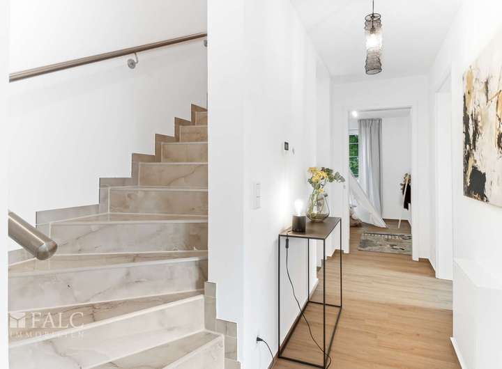Auch technisch ist dieses Haus bestens ausgestattet: Die hochwertige Massivbauweise entspricht dem Effizienzhaus-40-Standard und ist somit förderfähig. Eine moderne Wärmepumpe garantieren energieeffizientes Wohnen auf hohem Niveau. Für besonderen Komfort sorgen die Fußbodenheizung in allen Räumen, elektrische Rollos sowie hochwertige Fenster mit dreifacher Wärmeschutzverglasung.