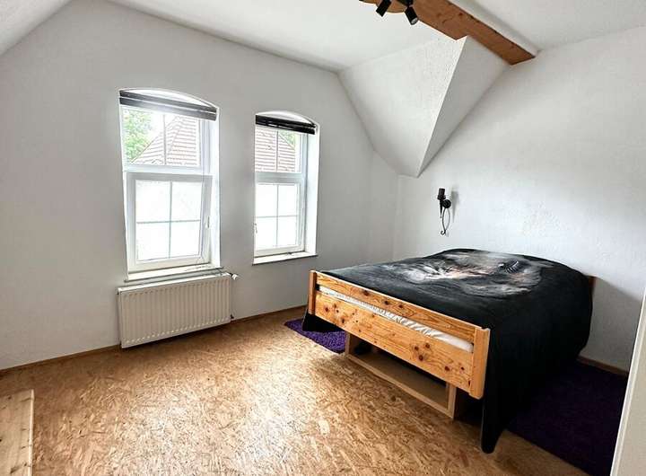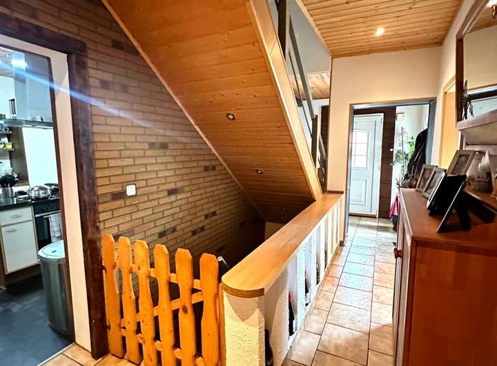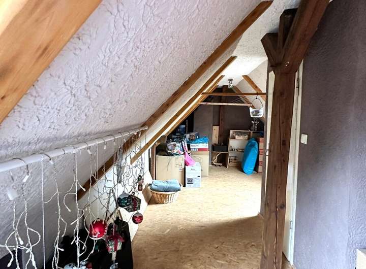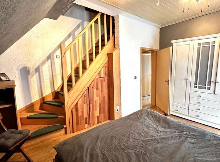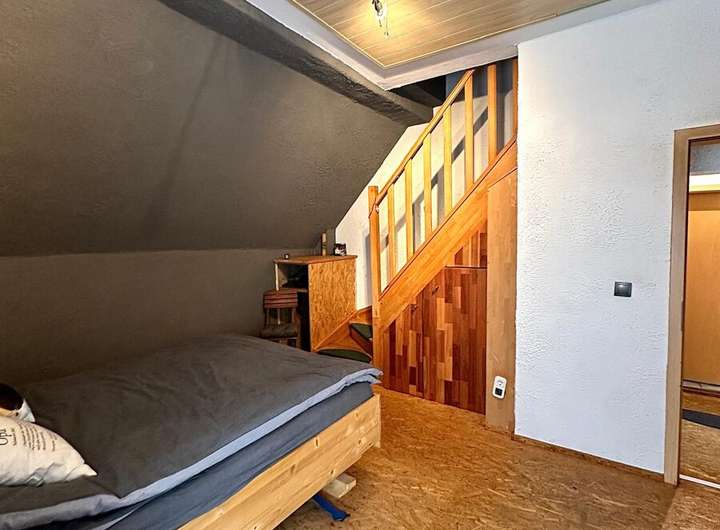 Im Obergeschoss befinden sich drei Schlafzimmer – ideal für Familien – sowie ein großes Tageslichtbad mit Badewanne und Dusche. Das Elternschlafzimmer bietet einen besonderen Rückzugsort: Über eine interne Treppe gelangen Sie direkt ins ausgebaute Dachgeschoss, das vielseitig nutzbar ist – etwa als Arbeitszimmer, Atelier oder Leseecke.