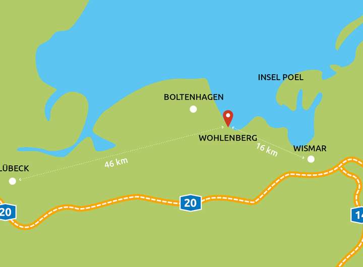 Der Ferienort Wohlenberg ist ein Ortsteil der Stadt Klütz und befindet sich zwischen den Hansestädten Lübeck und Wismar, direkt an der Ostsee.