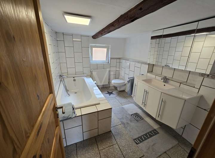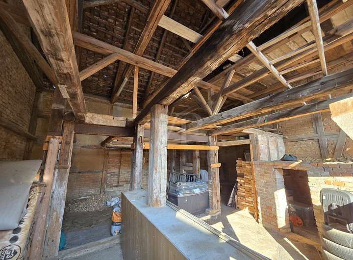 Dieses schätzungsweise Mitte des 19. Jahrhunderts in nichtunterkellerter traditioneller Fachwerkbauweise auf einem ca. 334 m² großen Eigentumsgrundstück errichtete Ackerbürgerhaus bietet mit 4,5 Zimmern mit teils urigem Sichtgebälk, 2 Tageslichbädern und einer grossen Wohnküche Platz für Paare oder die kleine Familie auf insgesamt knapp 122 m² Wohnfläche nach DIN (aufgrund der teilweise sehr geringen bauart- und baualterbedingten Raumhöhen, bei rund 150 m² Nutzfläche). Zusätzlich befindet sich hinter dem Haus, als Verlängerung, das ehemalige Stallgebäude von rund 40 m² Grundfläche, dessen solides Fachwerkgebälk auf einen Ausbau wartet.