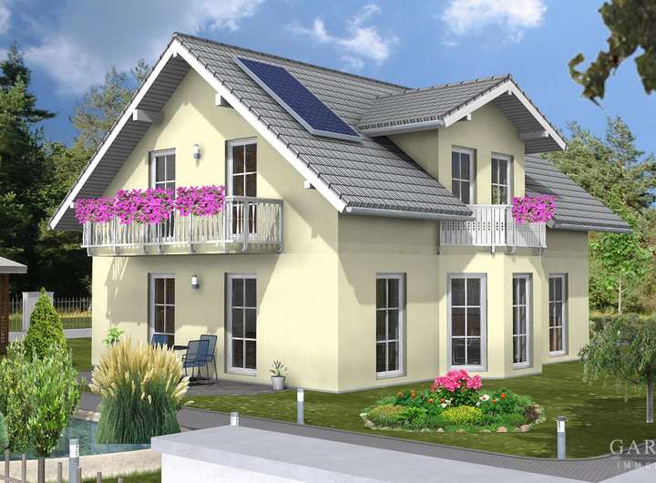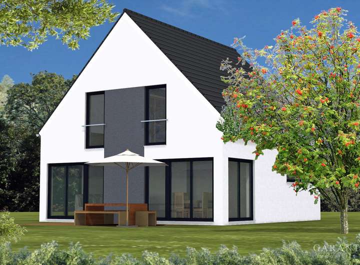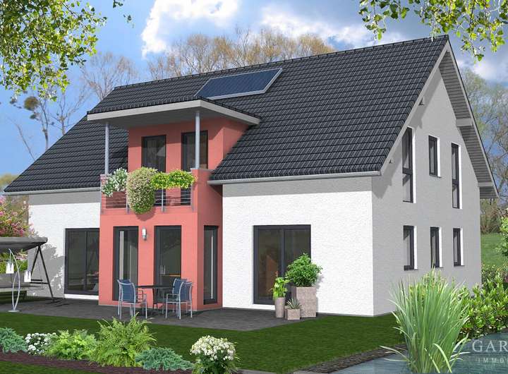 Das schlüsselfertig geplante Massivhaus bietet ausreichend Platz für Kinder und Home-Office.