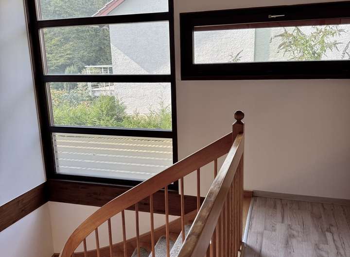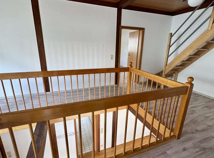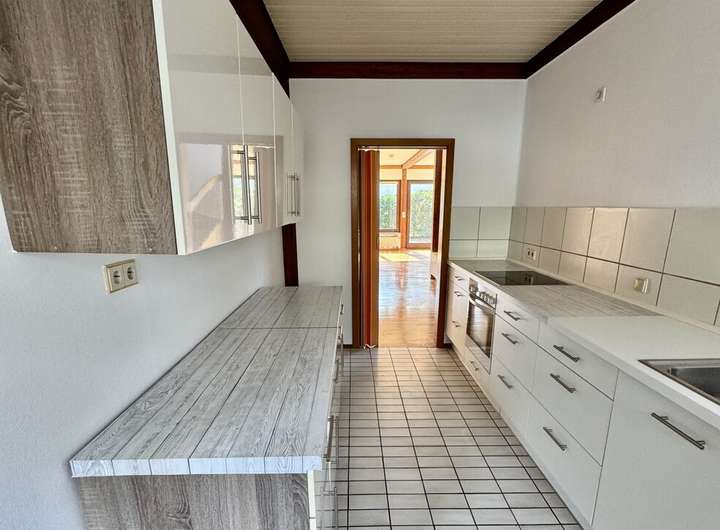 Im Erdgeschoss bildet der großzügige Wohn- und Essbereich mit direktem Zugang zu den beiden Gärten das Herzstück des Hauses. Die verbleibende Einbauküche ( 50 Euro Zuzahlung) ist harmonisch in den offenen Grundriss integriert und lädt zum Kochen und Verweilen ein. Eine Galerie im Obergeschoss sorgt für ein offenes Wohngefühl und bietet zusätzliche Nutzfläche.