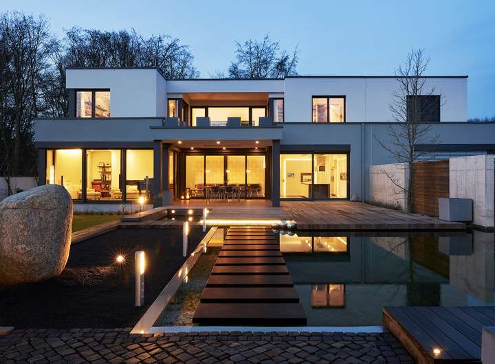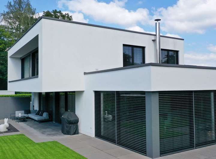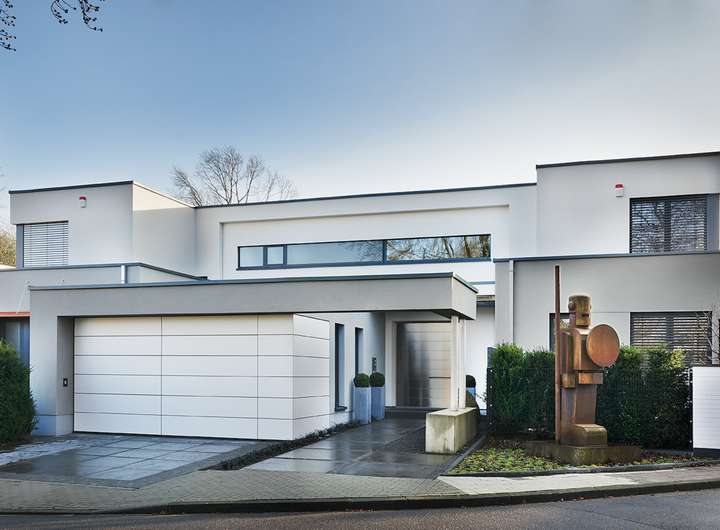 - 2 Vollgeschosse mit Flachdach im klaren, modernen Bauhausstil