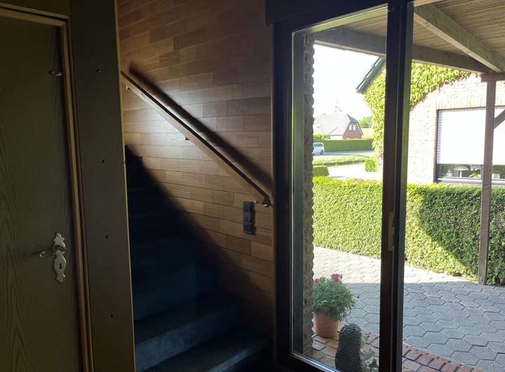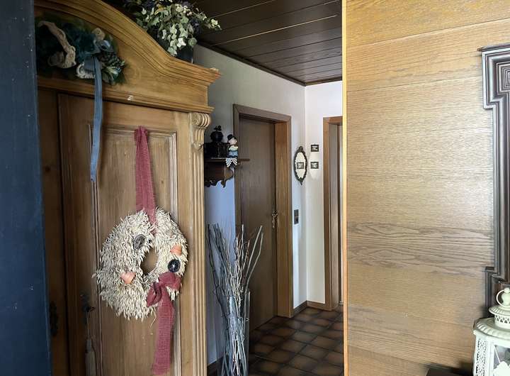 Bereits beim Eintreffen fällt die großzügige Zufahrt auf: Zwei separate Auffahrten bieten ausreichend Stellfläche, ergänzt durch eine Garage sowie ein Carport. Von der Garage aus gelangt man direkt in den Hauswirtschaftsraum.