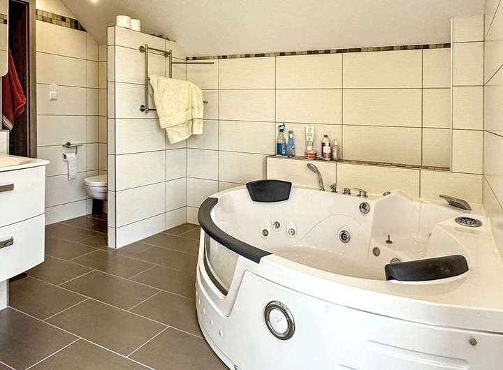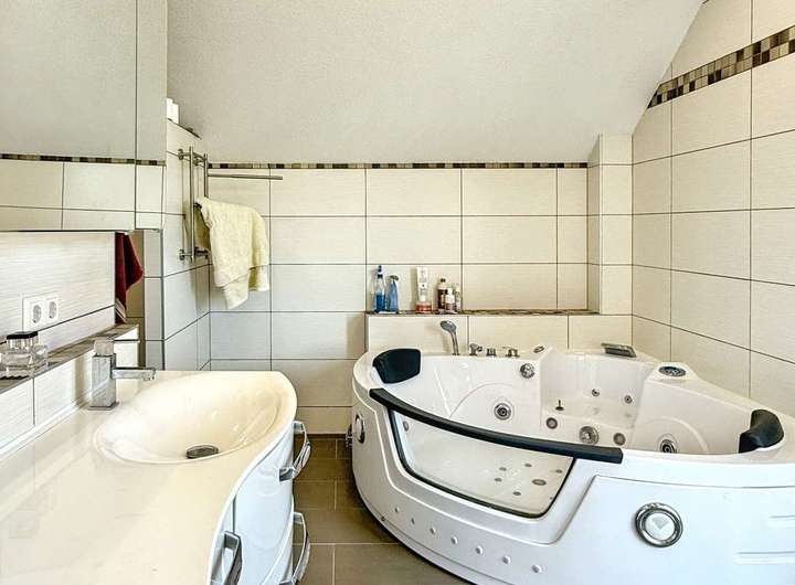 - 2 moderne Badezimmer mit Dusche und Badewanne, das Badezimmer im Obergeschoss verwöhnt mit luxuriöser Whirlpoolbadewanne - so wird jeder Tag zum Wellness-Erlebnis!