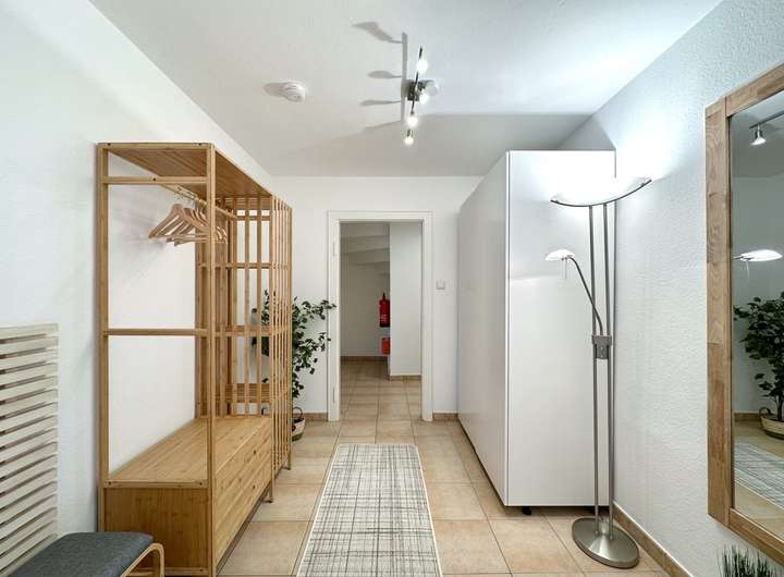 Die zweite Einheit ist eine voll ausgestattete Einliegerwohnung, die derzeit als Ferienwohnung vermietet wird. Sie umfasst ein gemütliches Wohnzimmer, ein Schlafzimmer, eine Küche mit Essbereich sowie ein modernes Badezimmer und einen praktischen Garderobenbereich. Diese Einheit eignet sich sowohl als Gästeapartment als auch für die Nutzung als zusätzliche Einkommensquelle.