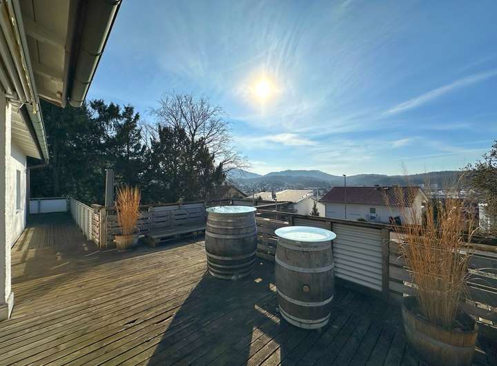 Im Außenbereich erwarten Sie neben dem repräsentativen Vorgarten mehrere Terrassenbereiche um das Haus herum.