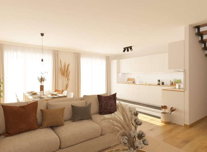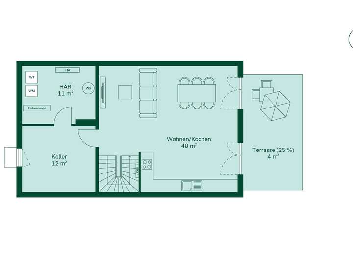 Willkommen in Ihrem neuen Zuhause. Im Untergeschoss genießen Sie einen großzügigen Wohn- und Küchenbereich, ideal für gesellige Abende mit der Familie. Der Keller bietet hier zusätzlichen Stauraum und der angrenzende Hauswirtschaftsraum sorgt für praktische Ordnung. Auf der Terrasse können Sie sonnige Stunden genießen und Grillabende mit Ihren Gästen veranstalten.
