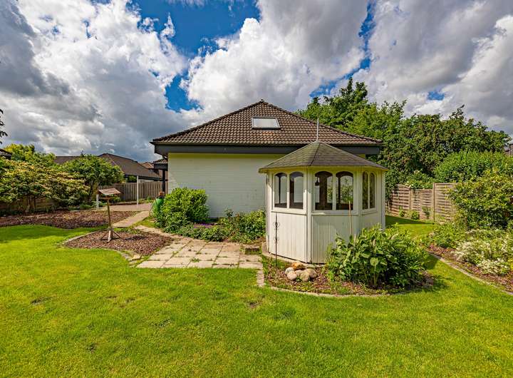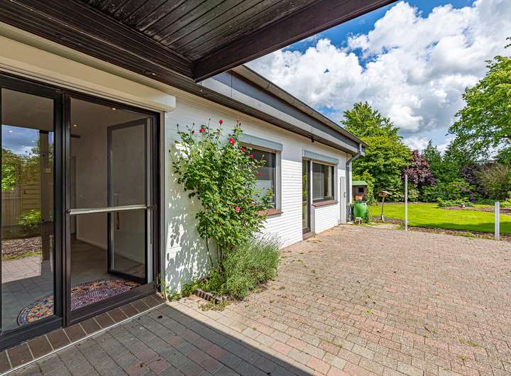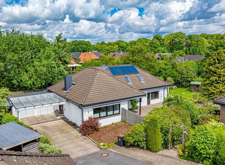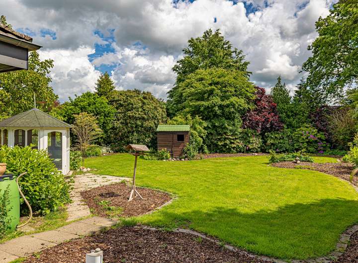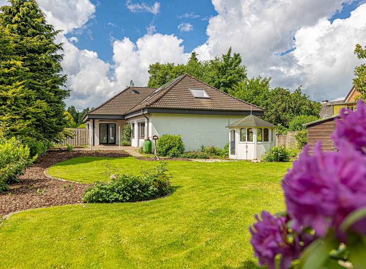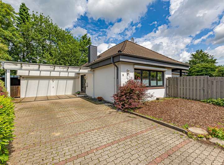 Die gepflegte Außenanlage und der schön angelegte Garten runden das Gesamtbild dieses attraktiven Bungalows ab und laden zum Verweilen im Grünen ein.