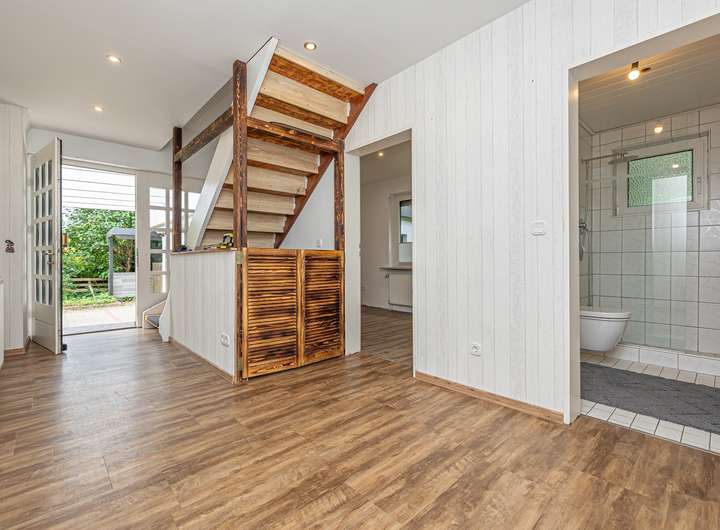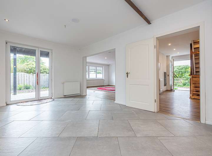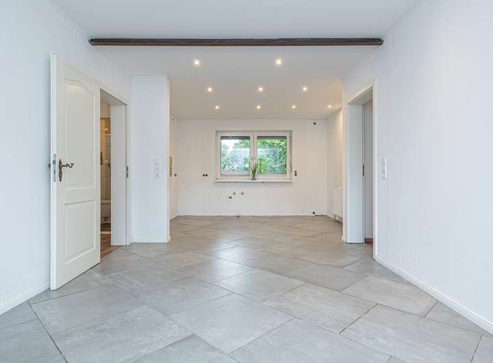 Herzlich willkommen in diesem gepflegten Winkelbungalow aus dem Jahr 1972. Der Bungalow überzeugt durch seine durchdachte Raumaufteilung und eine angenehme Wohnatmosphäre. Bereits beim Betreten empfängt Sie ein großzügigen Flur, der Ihnen Zugang zum Herzstück des Hauses gewährt – dem weitläufigen Wohn-Essbereich mit offener Küche. Ein separates Gäste-WC, ein Zimmer (mit Waschmaschinenanschluss) ist auch im vorderen Bereich des Hauses.
