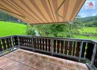 Über den zentralen Flur erreichen Sie das ruhige Schlafzimmer, das moderne Tageslichtbad mit Wanne und Dusche, das hübsche Kinderzimmer, die top ausgestattete Küche und das große Wohnzimmer. Von hier gelangen Sie zum Balkon mit traumhafter Aussicht ins Grüne. Eine elektrische Markise schützt Sie vor der Sonne.
