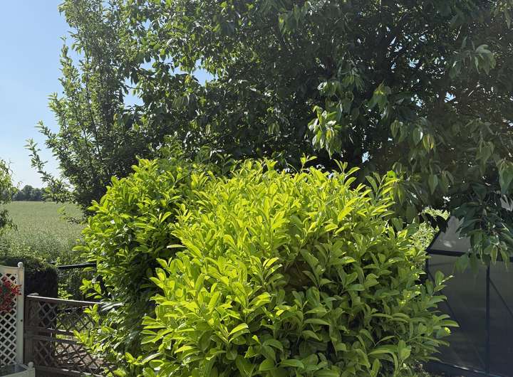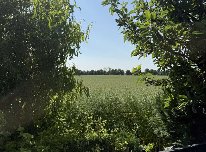 zur linken Grundstücksgrenze am Löschteich und zur Gartenseite haben Sie einen herrlichen Blick ins Grüne auf Felder und gewachsenem Baumbestand.