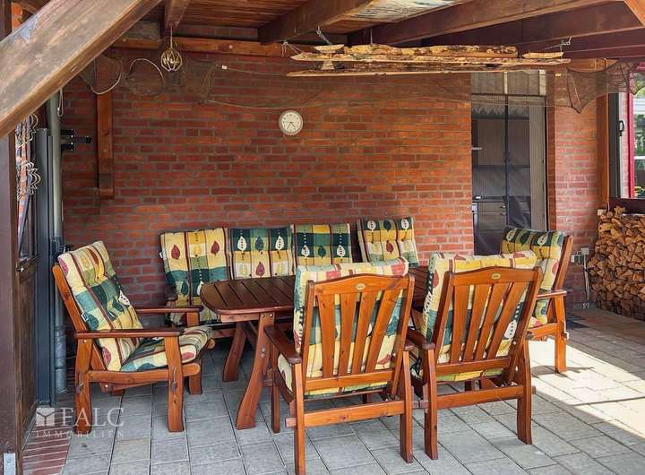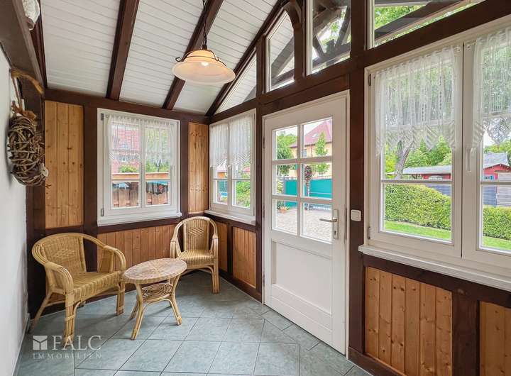 Das Haus begeistert außerdem mit einer gemütlichen Veranda, hier können Sie das ganze Jahr die Natur und die Sonne geschützt genießen.
