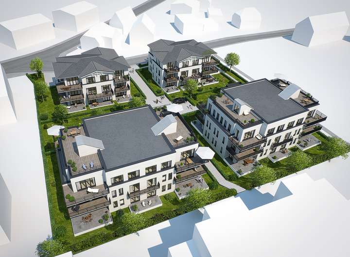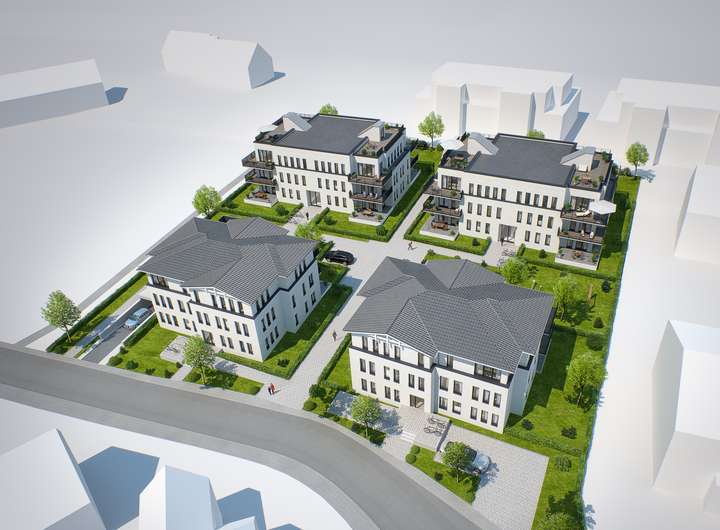 Hier entstehen 4 Einzelhäuser mit einer Gesamtwohnfläche von ca. 3.200 m².