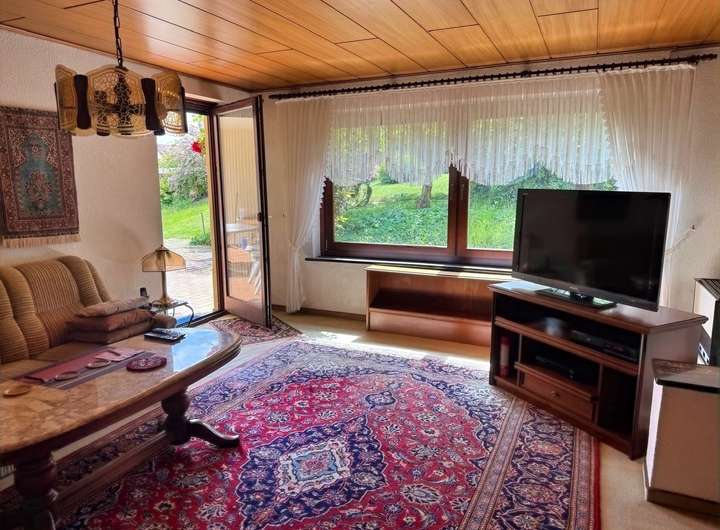 - Wohnzimmer ebenfalls mit direktem Zugang zur Terrasse und in den Garten.