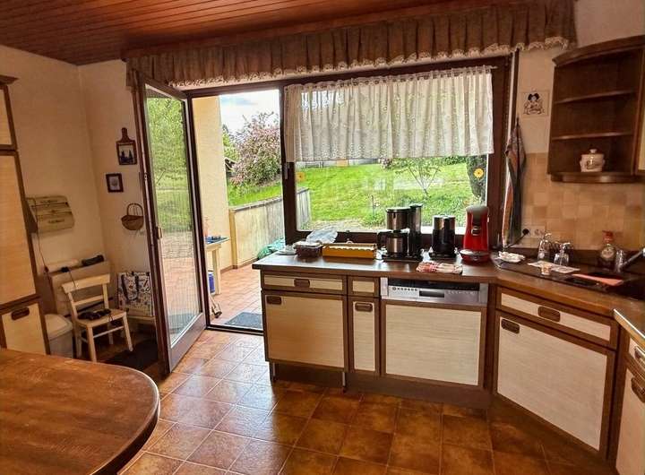 - offene Küche mit angrenzendem Essbereich und direktem Zugang zur Terrasse und in den Garten.