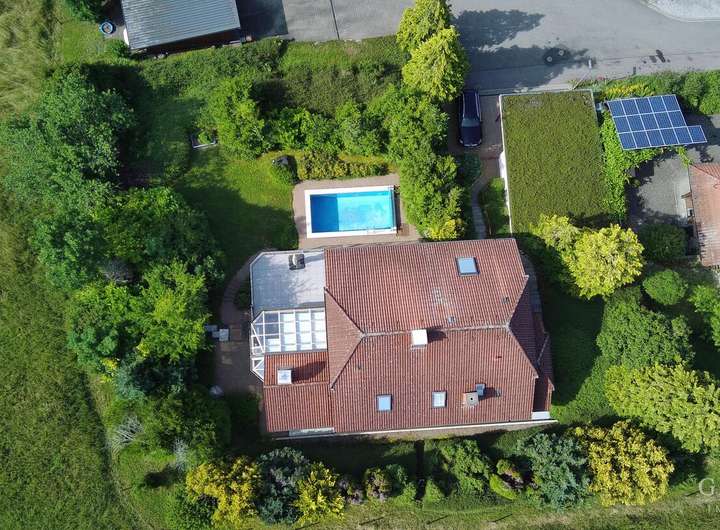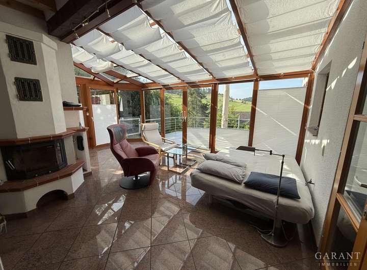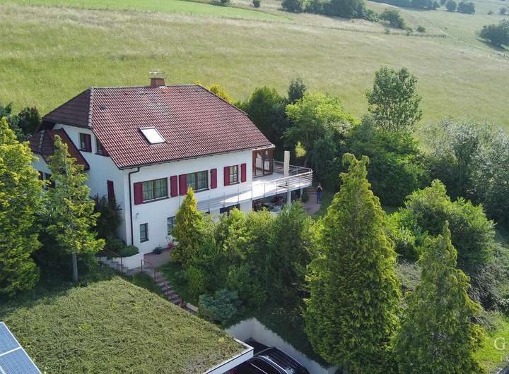 Am äußersten Ortsrand, einer der höchsten Punkte im Dorf, am Ende einer Sackgasse, kurz gesagt: Eine der besten Lagen im Ort. Die perfekte Aussicht gibt es direkt dazu.