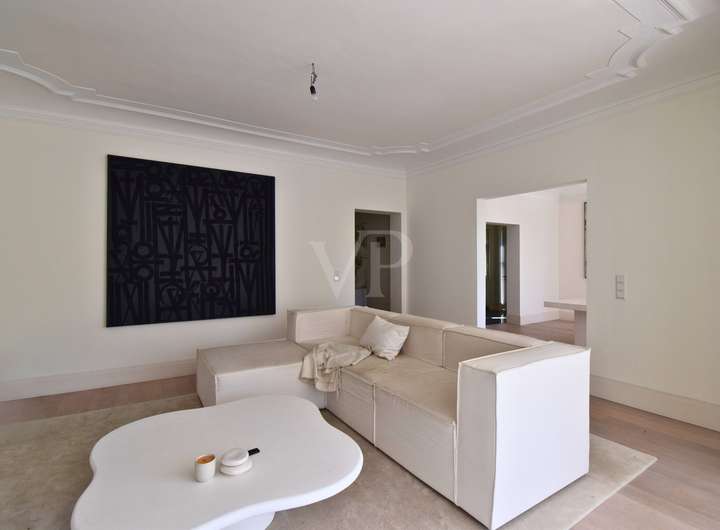 * Offenes Wohnkonzept mit hohen Decken und großzügigen Fensterfronten