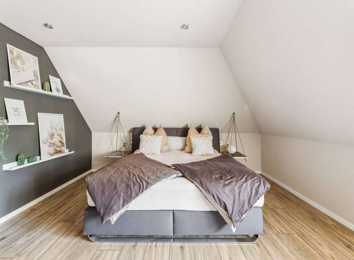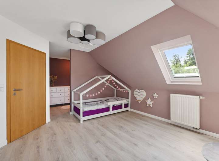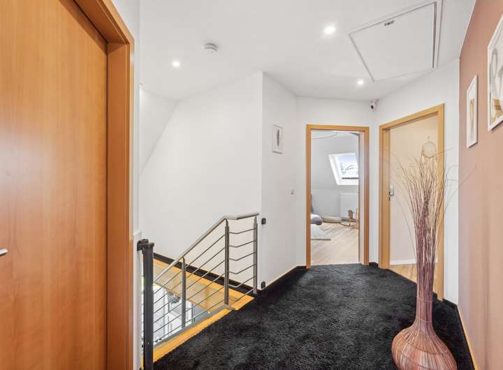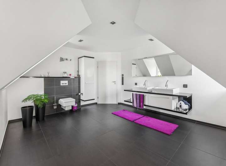 - Das Obergeschoss bietet Platz für das Master-Bedroom mit angrenzendem Ankleidebereich sowie für zwei weitere Zimmer, ein Büro und das Hauptbad