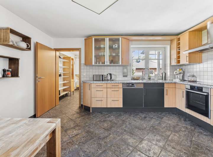 - Zwei Zimmer sowie die Küche mit angrenzender Speisekammer und dem Hauswirtschaftsraum ergänzen das Raumangebot im Erdgeschoss