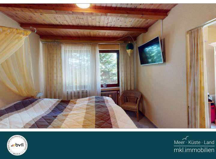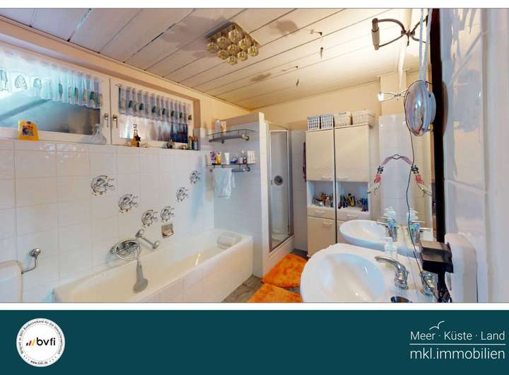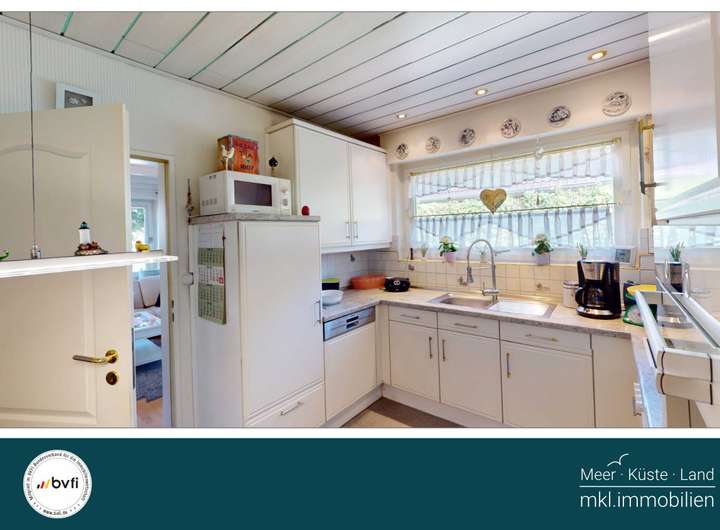 Abgerundet wird dieses einmalige Angebot durch eine Garage, drei weitere Stellplätze und ein gepflegtes, liebevoll angelegtes Grundstück, das mit seinem Blick in die friesische Landschaft die Seele berührt.