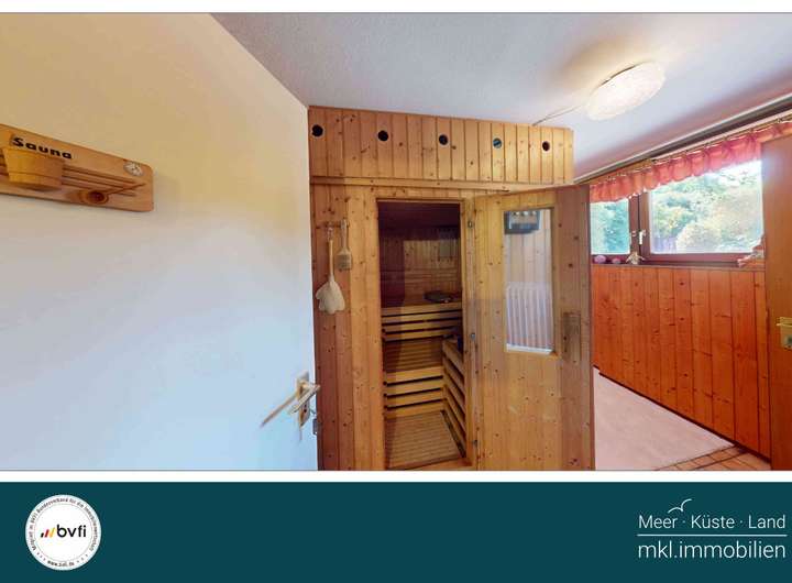 Für Entspannung sorgt die hauseigene Sauna, in der Sie dem Alltag entfliehen können. Und auf der großzügigen Terrasse oder dem sonnigen Balkon genießen Sie nicht nur frische Luft, sondern einen traumhaften Blick in die Natur, wie man ihn nur selten findet – Weite, Ruhe und Vogelgezwitscher inklusive.