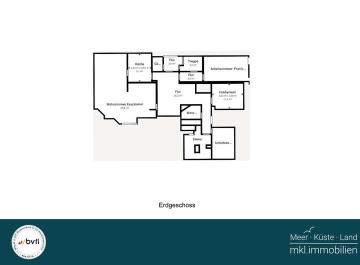 - Praxisfläche separat ca. 30m² mit behindertgerechten Duschbad