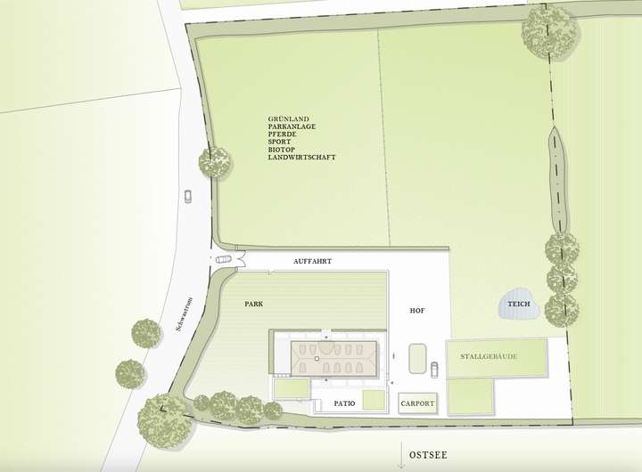 In exklusiver Alleinlage auf der Halbinsel Schwansen, weniger als drei Kilometer von der Ostsee entfernt, liegt auf einem über 12.150 m² großen Grundstück das Landhaus CvQ 1879 (Carl von Qualen). In der Alleinlage des Landhauses CvQ 1879 können die künftigen Bewohner und Gäste dieses großzügigen Landsitzes dem Rauschen der Bäume, dem Geschrei der Möwen lauschen oder einfach die bunte Pracht und gleichzeitige Ruhe der Natur genießen. Kein Verkehrslärm, bis auf das gelegentliche und doch eher meditative Tuckern der Traktoren, der die Ruhe stören könnte. Es gibt viele gute Gründe im Landhaus CvQ 1879 eine unbeschwerte Zeit mit Familie und Freunden zu verbringen.