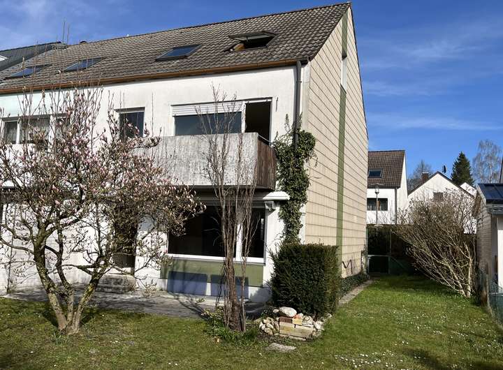 Brauchen Sie Platz für Ihre Familie? Sie möchten einen Garten? Dann haben wir vielleicht das Richtige für Sie. Ein familienfreundliches Reiheneckhaus in Ismaning. Das Haus liegt in der Mitte einer ruhigen Anliegerstraße auf einem real-geteilten Grundstück. Das Grundstück ist schön nach Süd-Westen ausgerichtet und durch die Lage als Reiheneckhaus mit umlaufenden Garten sehr hell und großzügig.