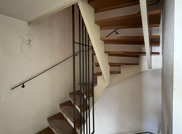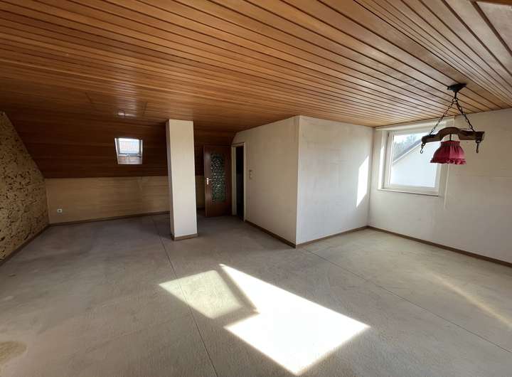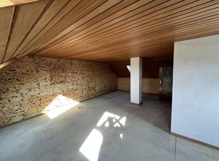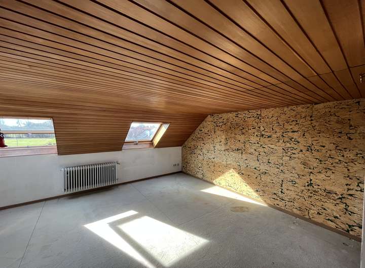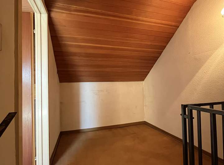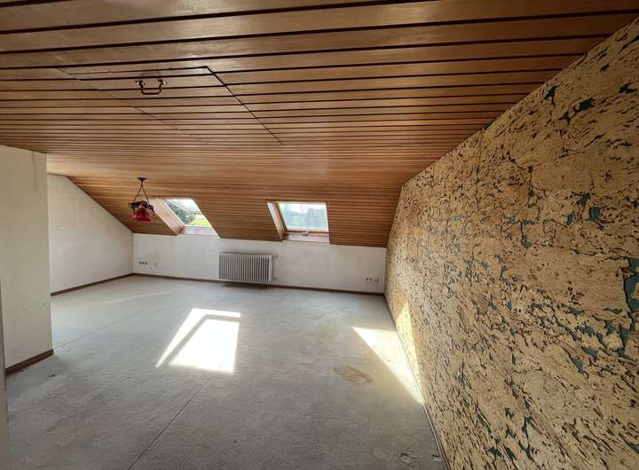 Das Reiheneckhaus entspricht in Zustand und Ausstattung dem Baujahr (1973) und bietet dadurch ein hohes Maß zur eigenen Gestaltung nach Ihren Vorstellungen. Im Erdgeschoß befinden sich die Diele, das zum Garten gelegene Wohnzimmer mit der großen Fensterfront und die Küche (zum Fußweg). Im OG liegen drei Zimmer und das Bad. Zwei Zimmer sind zum Garten ausgerichtet. Vor dem größeren Schlafzimmer liegt der West-Balkon. Das Bad hat ein großes Fenster. Das Highlight bildet das gemütlich ausgestattete Studio im Dachgeschoß mit charmanten Schrägen und großen Dachfenstern mit tollem Ausblick. Derzeit wird das Haus mit einer Gasheizung versorgt. Im Keller befinden sich bereits die Anschlüsse an das Fernwärmenetz.