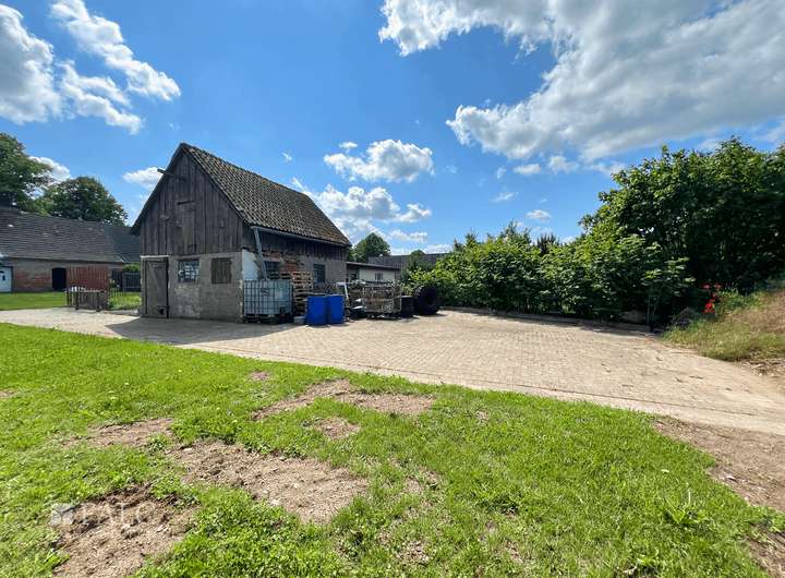 Auf dem Grundstück befinden sich zwei Nebengebäude: Ein Schuppen mit integrierter Garage sowie ein weiterer Schuppen mit angrenzender Terrasse – vielseitig nutzbar, zum Beispiel als Werkstatt, Lagerfläche oder zur privaten Nutzung im Gartenbereich.