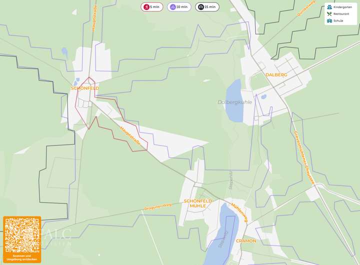 Die reizvolle Umgebung lädt zu vielfältigen Freizeitaktivitäten ein – ob ausgedehnte Spaziergänge, Radtouren oder Ausflüge zu den zahlreichen Seen und Wäldern der Region. Die Nähe zur Ostsee macht Schönfeld zudem zu einem attraktiven Wohnort für alle, die Erholung und Natur mit guter Erreichbarkeit verbinden möchten.