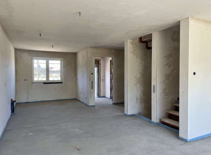 Ihr neues Heim betreten Sie durch den überdachten Eingang und erreichen von dort aus das Erdgeschoss mit Diele, Gäste-WC, Esszimmer mit Küche und das großzügige Wohnzimmer, dem Herzstück des Hauses. Über dieses gelangen Sie zur Terrasse und in den großen Garten – der perfekte Ort für Grillabende mit Ihren Liebsten oder ein Familienfrühstück am Sonntagmorgen. In der oberen Etage befinden sich drei Schlafzimmer – zwei Kinderzimmer sowie das Elternschlafzimmer mit begehbarer Ankleide – und ein großes Tageslicht-Badezimmer mit Badewanne und Dusche. Eine Etage höher findet sich das geräumige und ausgebaute Dachgeschoss, das einen idealen Rückzugsort für beispielsweise das Hobby oder das Arbeiten von zu Hause bietet.