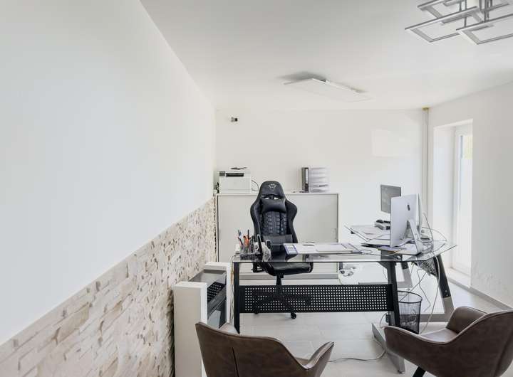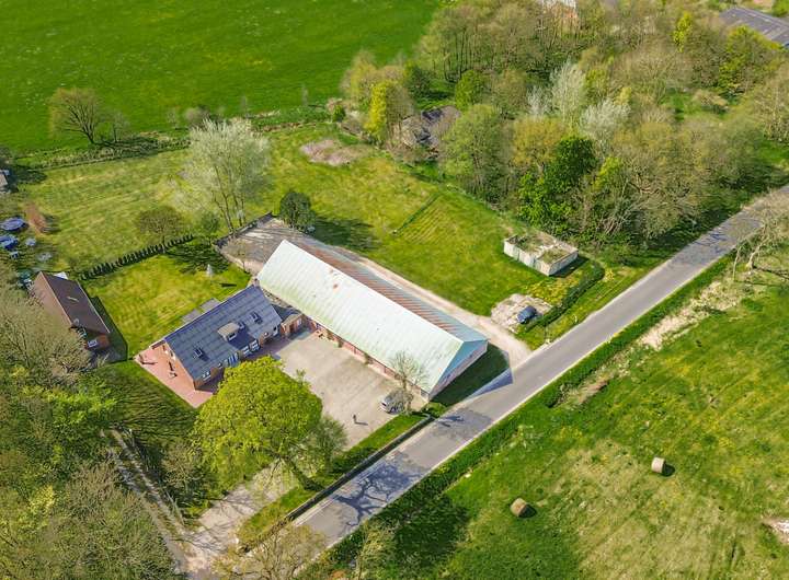 Die großzügige Auffahrt bietet ausreichend Parkmöglichkeiten und ist sogar für Schwerlastverkehr ausgelegt. Zusätzlich steht ein separates Bürogebäude zur Verfügung, das über den Hof erreichbar ist. Die weitläufigen Stallungen bieten vielseitige Nutzflächen und eröffnen weitere Entwicklungsmöglichkeiten – die Genehmigung für zusätzliche Wohnflächen liegt bereits vor.