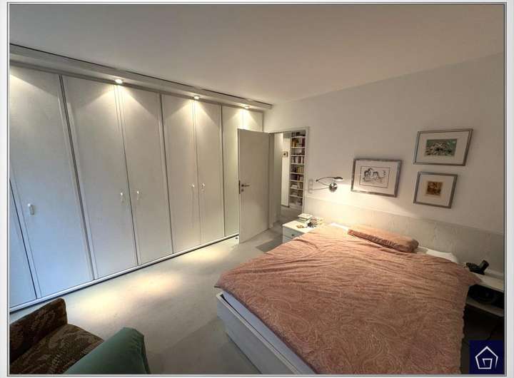 Für zusätzlichen Stauraum sorgen praktische Einbauschränke, die in das Gesamtbild der Wohnung integriert sind. Der überwiegend mit Teppichboden ausgestattete Wohnbereich schafft eine gemütliche Atmosphäre und unterstreicht den klassischen Charakter der Wohnung.