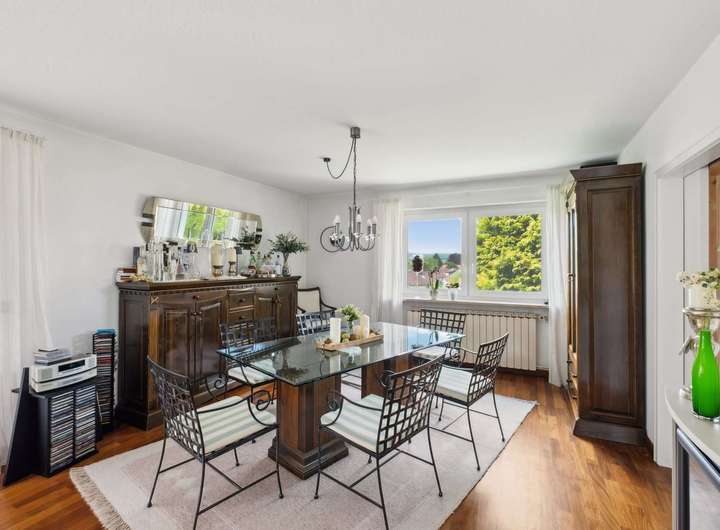 Die letzte Modernisierung fand 2015 statt, sodass Sie von einer zeitgemäßen und hochwertigen Ausstattung profitieren. Der Bodenbelag aus Parkett verleiht den Räumen eine warme und einladende Atmosphäre. Die Einbauküche ist funktional gestaltet und bietet ausreichend Platz für kulinarische Entfaltung.