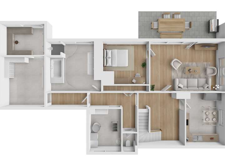Das Haus verfügt über insgesamt 8 Zimmer, darunter 6 mögliche Schlafzimmer, die Ihnen und Ihrer Familie viel Raum zur Verfügung stellen. Die 4 modernen Bäder sind perfekt auf die Bedürfnisse mehrerer Bewohner abgestimmt und bieten hohen Komfort.