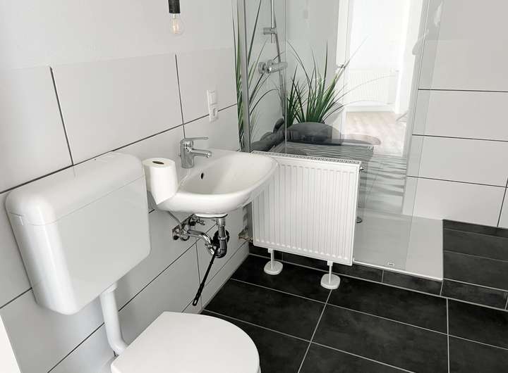 + Bäder hell modern gefliest,
