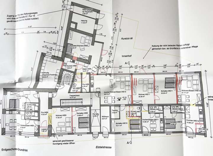 + Keller mit 12 Abstellräumen für jede Wohnung, etc.