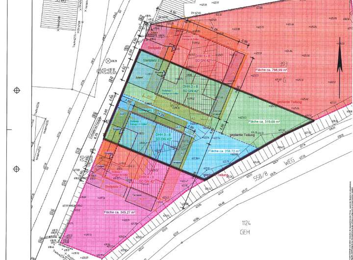 Auf der Fläche stehen noch zusätzliche Grundstücke zur Verfügung. Ein kleines Grundstück mit 345 m² und ein größeres Grundstück mit 799 m². Beide sind mit Einfamilienhäusern bebaubar. Schauen Sie sich diese gerne ebenfalls an.