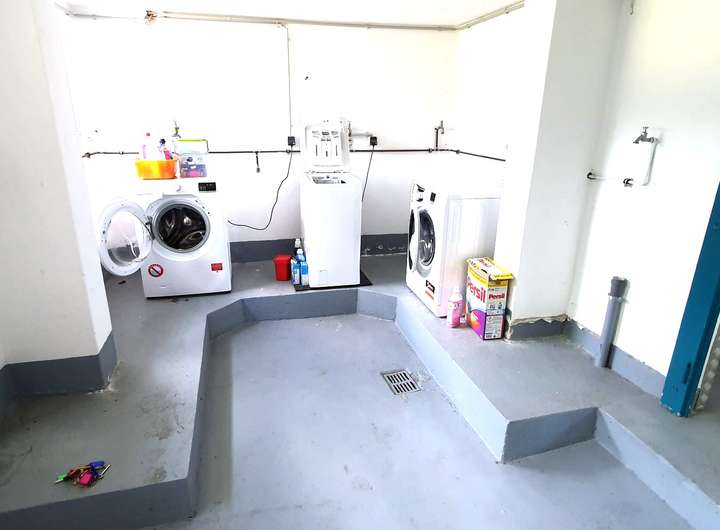 Jedes Haus hat einen extra Waschraum zum Aufstellen der Waschmaschinen der Mieter mit eigenem Wasserzähler und Stromanschluss und einen separaten grossen Trockenraum.