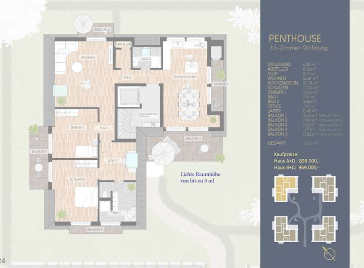 Penthouse-Wohnung (KfW 40) | bis zu 5 m Raumhöhe | barrierefrei | hervorragende, ruhige Wohngegend