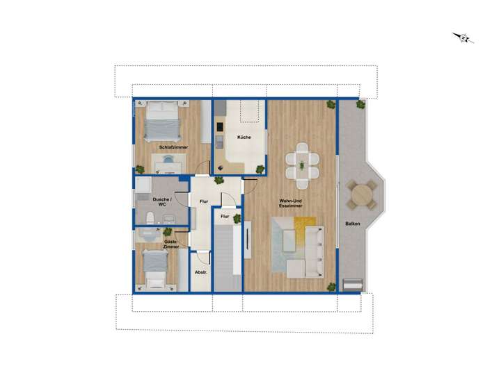 Terrasse/Balkon (je nach Aufteilung)