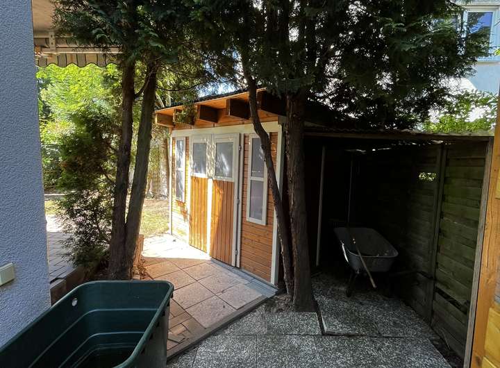 Zwei Außenstellplätze, zwei Gartenhäuser, ein liebevoll angelegtes Hochbeet sowie ein kindgerechtes Stelzenhaus runden dieses seltene Angebot ab.