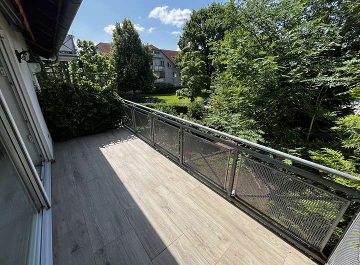Ein weiteres Highlight ist der 2019 modernisierte Balkon mit geschmackvollen Fliesen in Holzoptik – perfekt für entspannte Feierabende. Auch die sonnige, sichtgeschützte Südwestterrasse lädt zum Verweilen ein – sei es beim Frühstück im Freien oder beim Grillabend mit Freunden.