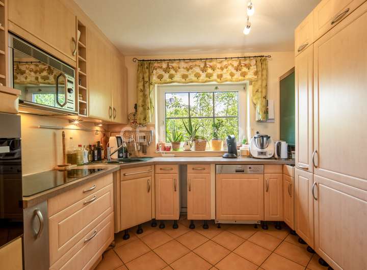 Moderne Einbauküche und geschmackvoll ausgestattete Bäder, die Funktionalität und Eleganz harmonisch verbinden.