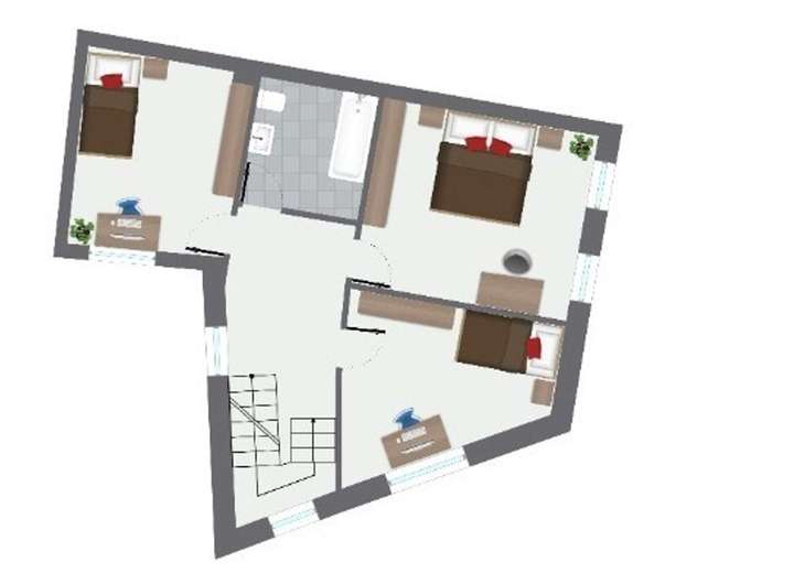 Mit einer Wohnfläche von 177 m² erstreckt sich dieses Eckhaus über drei Etagen mit insgesamt neun Zimmern, einer großzügigen Küche, einem Badezimmer und einem Speicherraum. Jedes Zimmer bietet genug Raum für kreative Gestaltungsmöglichkeiten. Das Haus hat einen eigenen Eingang vom Innenhof.